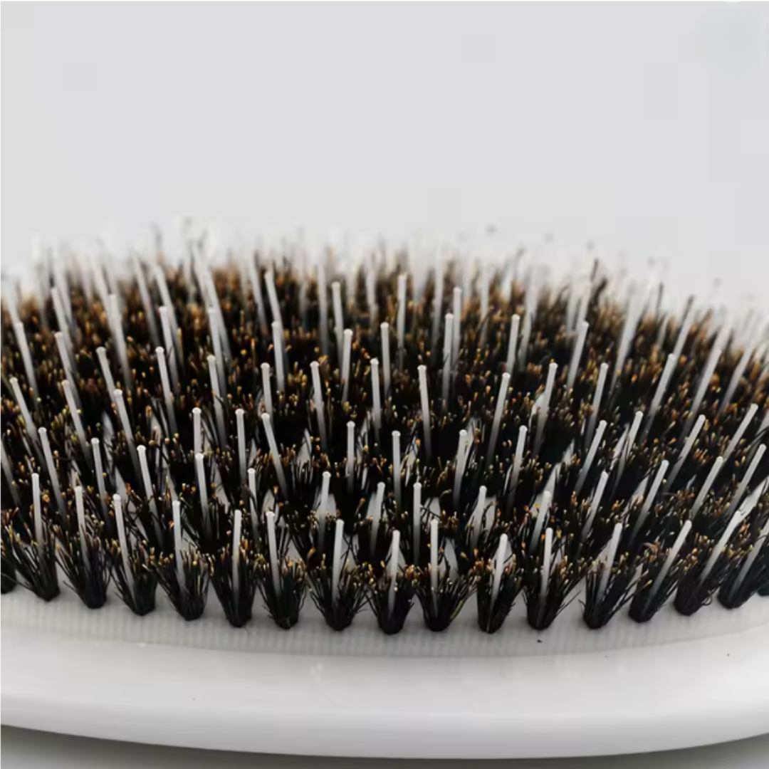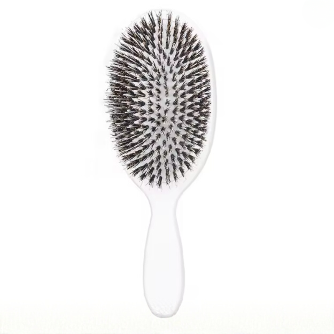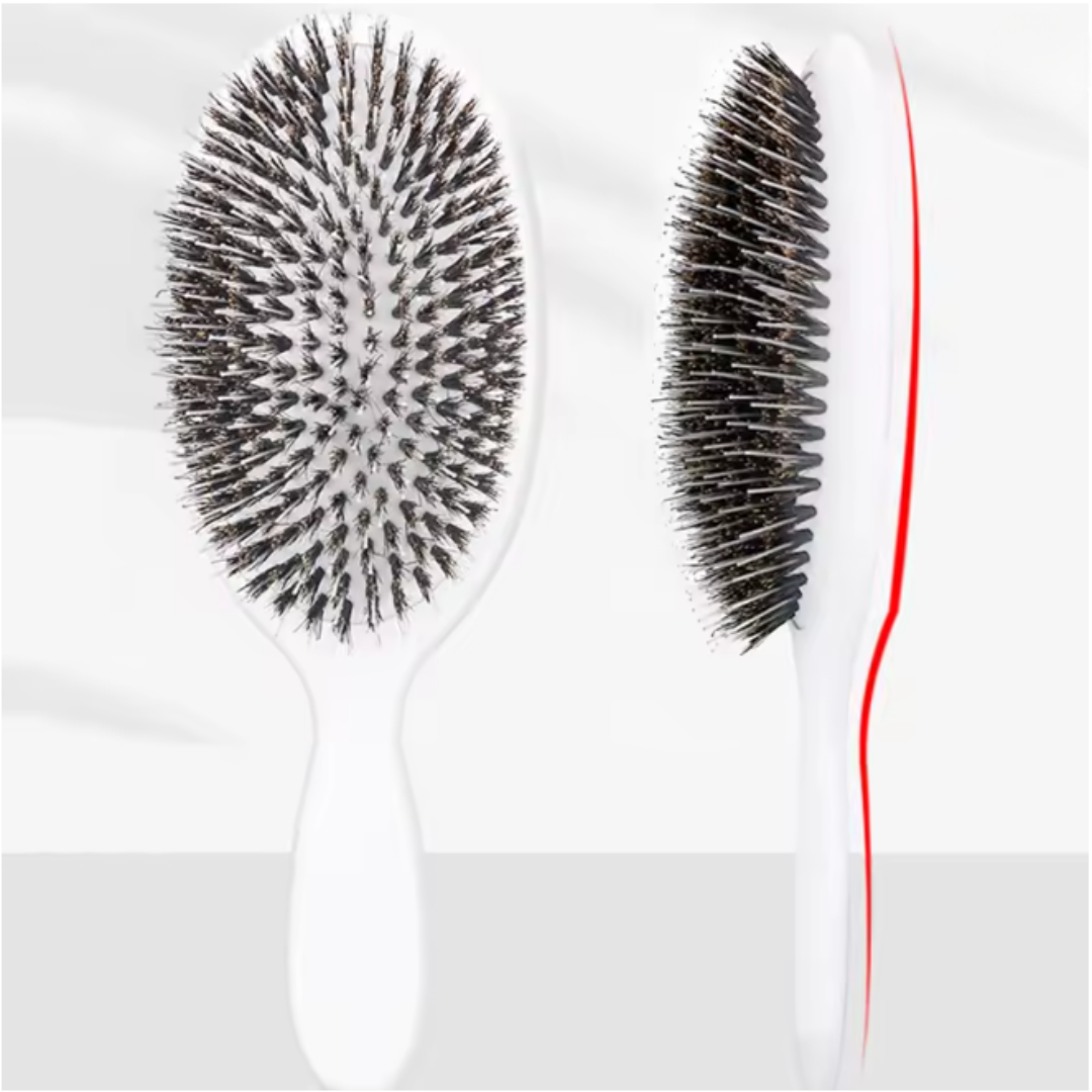 Die KivoNara Hair Haven Bürste vereint Pflege und Komfort in einem einzigartigen Design. Ihre Kombination aus kurzen und längeren Borsten sorgt für doppelte Wirkung: Die kürzeren Borsten entfernen sanft Rückstände und Schmutz, während die längeren Borsten die Kopfhaut massieren und die natürliche Ölverteilung im Haar unterstützen.